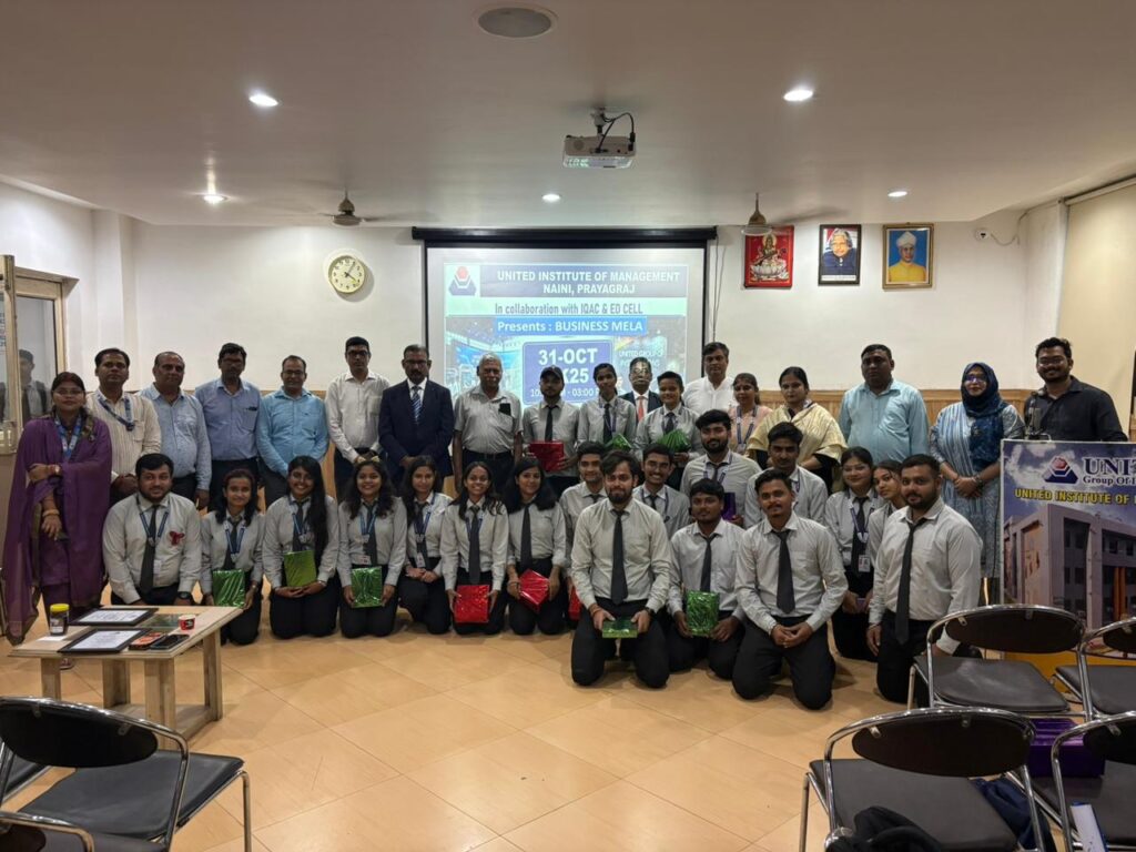 प्रयागराज यूनाइटेड इंस्टिट्यूट ऑफ मैनेजमेंट (UIM) ने 31 अक्टूबर 2025 को अपने प्रांगण में “बिज़नेस मेला 2025” का भव्य आयोजन किया। यह आयोजन नवाचार, उद्यमिता और विचार-आधारित शिक्षण को प्रोत्साहित करने की दिशा में एक महत्वपूर्ण पहल साबित हुआ।