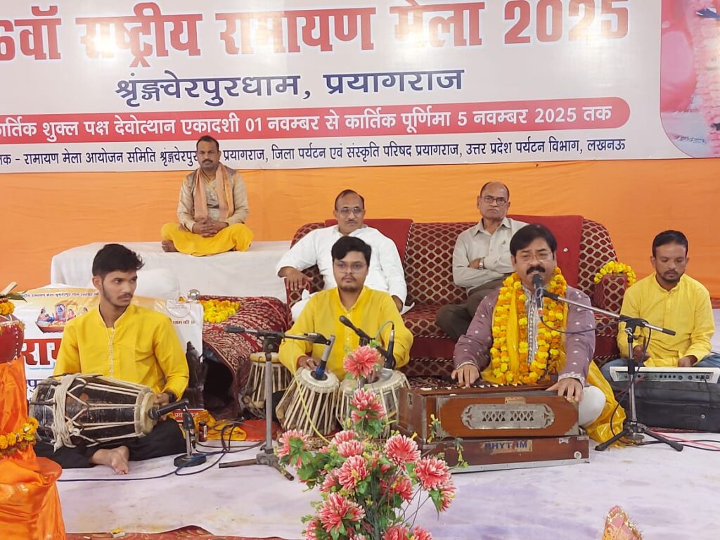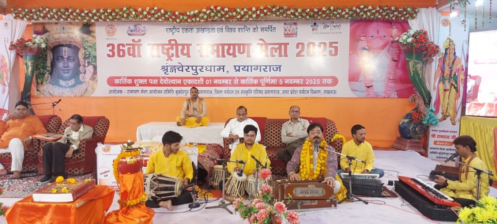 प्रयागराज l रामायण मेला आयोजन समिति श्रृंगवेरपुर धाम, जिला पर्यटन एवं संस्कृति परिषद, जिला प्रशासन प्रयागराज एवं उत्तर प्रदेश पर्यटन विभाग लखनऊ के संयुक्त तत्वावधान में आयोजित पांच दिवसीय 36वें राष्ट्रीय रामायण मेला 2025 का समापन संस्कृति विभाग लखनऊ उत्तर प्रदेश सरकार द्वारा प्रायोजित प्रसिद्ध भजन गायक मनोज गुप्ता के भक्तिपूर्ण एवं सुरीले भजनों के साथ संपन्न हुआ l