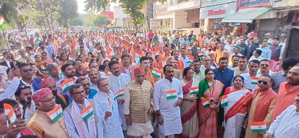 महानगर अध्यक्ष संजय गुप्ता ने इस अवसर पर कहा कि 7 नवम्बर 1875 को बंकिमचंद्र चटर्जी द्वारा रचित गीत संकल्प से सिद्धि का मंत्र है। उसका एक-एक शब्द कार्यकर्ताओं में ऊर्जा , प्रेरणा और राष्ट्रभक्ति का जोश भर देता है। 7 नवम्बर को वंदेमातरम गीत के 150 वर्ष पूरे होने पर कार्यकर्ताओं द्वारा हाथ में तिरंगा और माँ भारती की जय बोलने से पूरा वातावरण देशभक्ति से ओतप्रोत रहा। कार्यक्रम में पूर्व सांसद डा. रीता बहुगुणा जोशी , पूर्व कैबिनेट मंत्री डॉ. नरेंद्र सिंह गौड़ , महापौर गणेश केसरवानी , विधायक ई. हर्षवर्धन वाजपेयी , पूर्व महापौर अभिलाषा गुप्ता नंदी , पूर्व उप महापौर मुरारी लाल अग्रवाल , क्षेत्रीय उपाध्यक्ष अवधेश गुप्ता , कमलेश कुमार , मीडिया प्रभारी पवन श्रीवास्तव ,पूर्व जिलाध्यक्ष विनोद प्रजापति , रवि केशरवानी , अनिल केसरवानी , नरसिंह , डॉ. कृतिका अग्रवाल , ग्रिजेश मिश्रा , राजू पाठक , पार्षद नीरज गुप्ता , पार्षद बबलू रघुवंशी , पदुम जायसवाल , शिवेंद्र मिश्रा , डॉ. लक्ष्मी शुक्ला , अनुराग पांडेय , डॉ. शैलेश पांडेय , अनुज कुशवाहा , शोभिता श्रीवास्तव , आभा सिंह , शिखा रस्तोगी , स्मृति श्रीवास्तव , विजय पटेल , विजय श्रीवास्तव , सह मीडिया प्रभारी विवेक मिश्रा एवं छात्र-छात्राएं , अधिवक्ता व अन्य गणमान्य व्यक्ति मौजूद रहे।