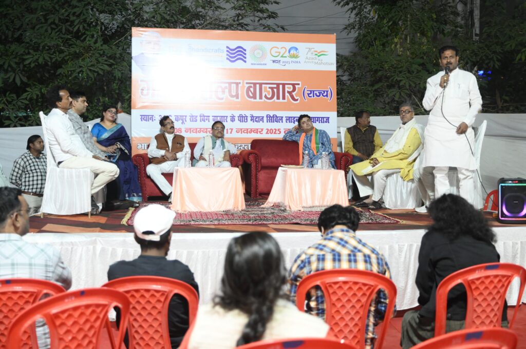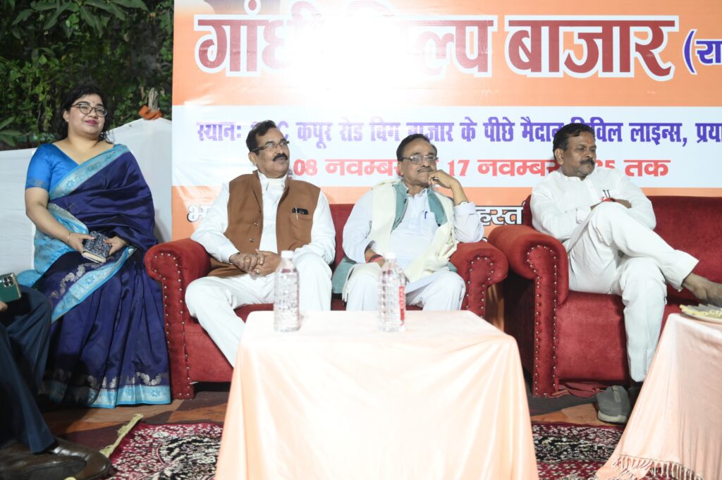 प्रयागराज भारत सरकार के हस्तशिल्प एवं वस्त्र मंत्रालय के विकास आयुक्त द्वारा प्रायोजित और सरायगनी ग्राम उद्योग संस्थान प्रयागराज द्वारा आयोजित ‘गांधी शिल्प बाजार’ का आज भव्य उद्घाटन हो गया। यह प्रदर्शनी हस्तशिल्पियों और हथकरघा बुनकरों के उत्पादों को एक छत के नीचे लाने का अनुपम प्रयास है, जो स्थानीय कारीगरों को राष्ट्रीय पटल पर चमकाने का माध्यम बनेगी। मुख्य अतिथि प्रयागराज महापौर गणेश केसरवानी और विशिष्ट अतिथि विधायक हर्षवर्धन बाजपेयी ने संयुक्त रूप से फीता काटकर इस बाजार का शुभारंभ किया।