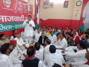समाजवादी पार्टी के पूर्व सांसद व प्रयागराज में गंगापार के समाजवादी सदस्यता अभियान के प्रभारी धर्मेंद्र यादव ने आज सपा कार्याल यप्रयागराज में महत्वपूर्ण बैठक की । सपा के निवर्तमान जिलाध्यक्ष योगेश चंद्र यादव के नेतृत्व में कार्यकर्ताओं ने माला फूल पहनाकर धर्मेंद्र यादव का स्वागत किया । कार्यकर्ताओं को संबोधित करते हुए पूर्व सांसद धर्मेन्द्र यादव ने कहा की आगामी निकाय चुनाव व लोकसभा के चुनाव में समाजवादी पार्टी मजबूती से चुनाव लड़ेगी और अधिक से अधिक जीत दर्ज करेगी क्योंकि समाजवादी पार्टी के कार्यकर्ताओं की ताकत व दृढ़शक्ति बहुत मजबूत है और सपा का कार्यकर्ता हालातों से लड़ना बखूबी जानता है । उन्होंने कहा की सदस्यता अभियान को गति देने के लिए रक्षाबंधन के बाद तीन से चार दिन के लिए प्रयागराज में गंगापार की प्रत्येक विधानसभाओं में कार्यकर्ताओं के साथ बैठक करेंगे और अधिक से अधिक लोगों को समाजवादी पार्टी से जोड़ने काम किया जाएगा । इस दौरान धर्मराज सिंह पटेल , विजमा यादव , अंसार अहमद , गीता पासी, डॉ मान सिंह यादव , वासुदेव यादव , सतवीर मुन्ना , राधेश्याम पटेल , हीरामणि पटेल , राम सुमेर पाल , कृष्ण मूर्ति यादव , मिराज आरिफ , अनिल यादव , जीत लाल पासी , महावीर यादव , पप्पू लाल निषाद , रामदुलार यादव , दूधनाथ पटेल , रामानंद भारती, अमर नाथ मौर्य , अजय श्रीवास्तव , नाटे चौधरी , नूरुदीन सैफी , रंगी लाल , हरीश चंद्र , रमाकांत विश्वकर्मा , योगेश पाल , शकील इस्माइल , अमर सिंह , मीना तिवारी , चंद्र शेखर तिवारी , सुभाष , आशुतोष तिवारी , नितेश तिवारी , अनिता श्रीवास्तव, प्रेम चंद्र मौर्य , राजबहादुर यादव , कमलेश रतन, राम मिलन यादव , धारा भारतीया , दयाशंकर पासी आदि लोग उपस्थित रहे।