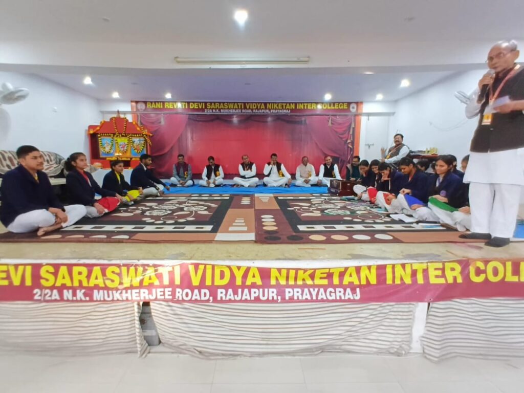 प्रयागराज l विद्या भारती से संबद्ध काशी प्रांत के रानी रेवती देवी सरस्वती विद्या निकेतन इंटर कॉलेज राजापुर प्रयागराज में विद्या भारती योजना के अंतर्गत प्रतिवर्ष होने वाले वार्षिक शैक्षिक निरीक्षण के क्रम में विद्यालय का वार्षिक निरीक्षण विद्यालय के प्रधानाचार्य बांके बिहारी पाण्डेय के मार्गदर्शन में सरस्वती विद्या मंदिर इंटर कॉलेज झारखंड कादीपुर सुलतानपुर से आए हुए निरीक्षकों की टोली के प्रमुख प्रधानाचार्य अवधेश मिश्र एवं उनके सहयोगीगण के द्वारा आज 3 दिसंबर से वंदना सत्र से प्रारंभ हुआ जो कि 5 दिसंबर तक चलेगा l