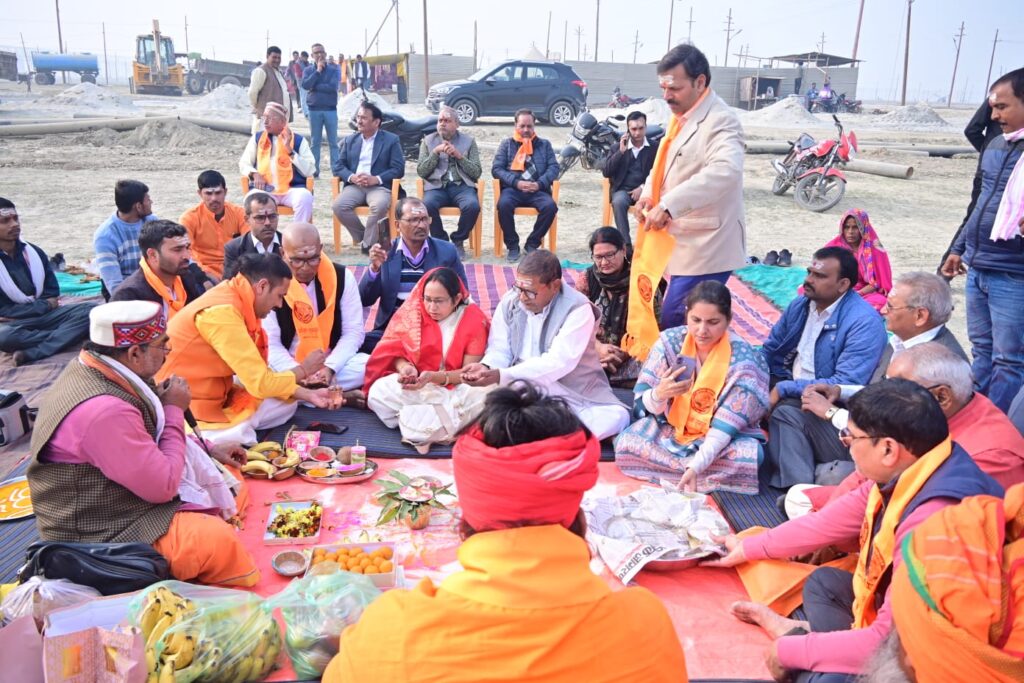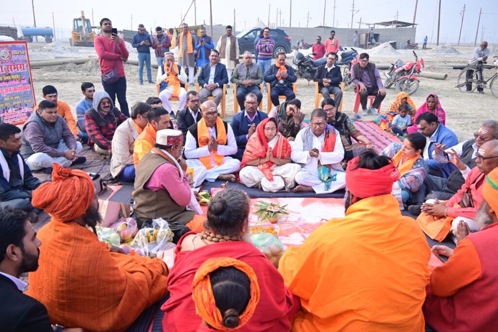 गंगा समग्र शिविर का भूमि पूजन के साथ हुआ माघ मेला 2026 के कैम्प निर्माण का शुभारंभ