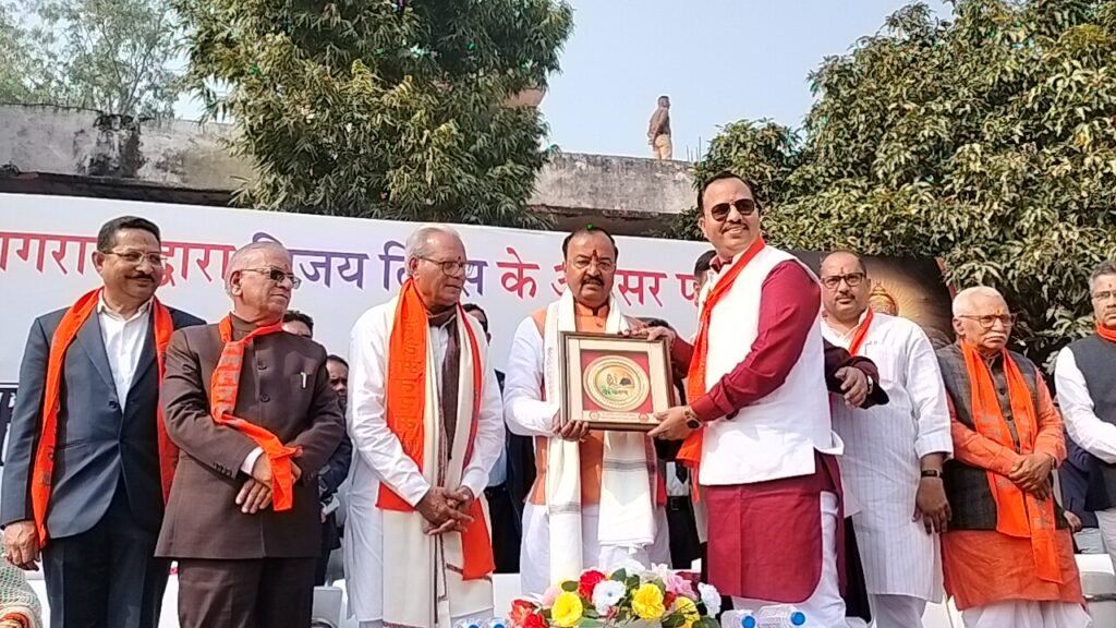 उन्होंने इशारों ही इशारों में कांग्रेस और समाजवादी पार्टी पर निशाना साधते हुए कहा कि जो लोग वंदे मातरम के खिलाफ अपना प्रचार चला रहे हैं वह यह नहीं जानते कि अभी तो आधा वंदे मातरम का गाना गया जाता है जिस देश के दो टुकड़े करने में उन्हें सफलता मिली थी, लेकिन जिस दिन देश की पीढ़ी में यह तय कर लिया की वंदे मातरम को पूरा का पूरा गया जाएगा उसे दिन अखंड भारत बनने में देर नहीं होगी। अखिलेश यादव पर तंज करते हुए उन्होंने कहा कि अखिलेश यादव और शहजादे की जोड़ी ने मगध यानि पूरे बिहार में सिर्फ इतनी ही सीट जीत पाई जितना भी एक कर में बैठकर घूम सकते हो। यही हाल 2027 के चुनाव में होगा जब भारतीय जनता पार्टी की डबल इंजन की सरकार द्वारा किए जा रहे कार्यों के बल पर उत्तर प्रदेश में एक बार फिर भगवा लहर दौड़ेगी और भगवान श्री राम के आशीर्वाद से हरे रंग के चादर वाले लोगों की पार्टी एक कार के अंदर सिमट कर रह जाएगी।