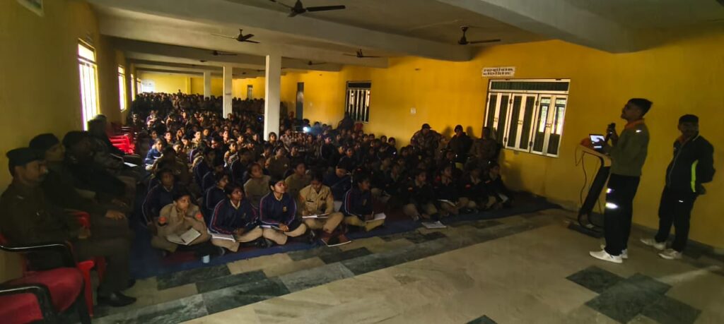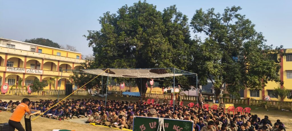 दिवस के प्रमुख सत्र में राज्य आपदा मोचन बल, उत्तर प्रदेश द्वारा कैडेट्स को आपदा प्रबंधन एवं जीवन-रक्षा के विविध तरीकों का सुसंगठित प्रशिक्षण प्रदान किया गया। प्राकृतिक एवं मानवीय आपदाओं से संबंधित महत्वपूर्ण जानकारियाँ प्रोजेक्टर के माध्यम से प्रस्तुत की गईं, जिससे कैडेट्स को आपदा की परिस्थितियों को समझने, त्वरित निर्णय लेने तथा सुरक्षित बचाव की व्यावहारिक समझ प्राप्त हुई।
