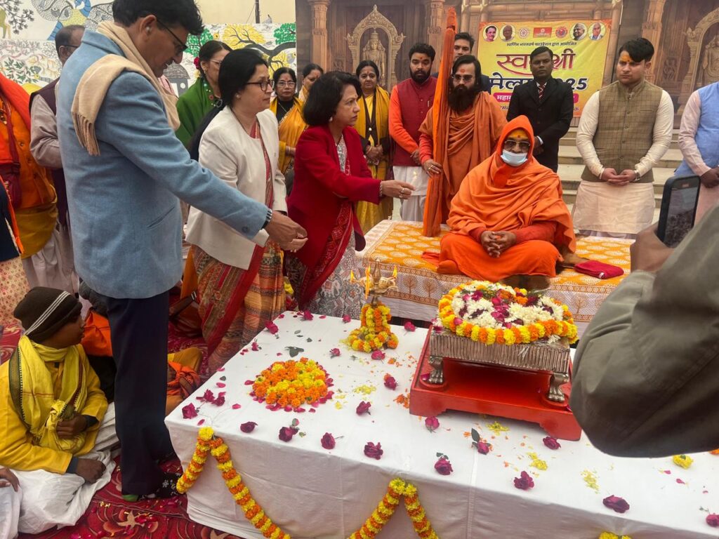 काशी प्रांत स्वदेशी जागरण मंच के द्वारा प्रयागराज के मेले की संकल्पना की सराहना करते हुए स्वामी वासुदेवानंद जी ने कहा कि अब समय आ गया है कि हम स्वदेशी पर चर्चा ना करें बल्कि स्वदेशी का आचरण करें। पूज्य शंकराचार्य जी ने स्वदेशी कार्यकर्ताओं को संबोधित करते हुए कहा कि अल्प संख्या में स्वदेशी के कार्यकर्ता दीर्घ जनसंख्या के हृदय में स्वदेशी का दीप प्रज्वलित कर सकते हैं। शंकराचार्य जी ने कहा कि स्वदेशी भाषा, स्वदेशी भूषा स्वदेशी रहन-सहन, स्वदेशी आत्मबोध पर गौरव करना भारतीय संस्कृति का ध्येय है। स्वदेशी का संरक्षण और पोषण करना भारतीय संस्कृति का संरक्षण एवं पोषण है। जब राष्ट्र संस्कृति से प्रेरित होता है, तब उस राष्ट्र की सामाजिक, राजनीतिक एवं आर्थिक व्यवस्था स्वदेशी का अनुसरण करने लगती है। स्वदेशी का अनुसरण करके कोई राष्ट्र अपने परम वैभव के शिखर पर पहुंच सकता है। स्वदेशी एक शाश्वत कर्तव्य और धर्म है। स्वदेशी जितना अल्पकालिक है उतना ही दीर्घकालिक है। स्वदेशी को जागृत करने से राष्ट्र जागृत होगा। मेले की विशिष्ट अतिथि डॉ शिखा दरबारी दरबारी ने कहा कि स्वदेशी भारत की आत्मा है। स्वदेशी राष्ट्र का आभूषण है। भारत की वैश्विक पहचान स्वदेशी के कारण है। भारत की संस्कृति पाश्चात्य संस्कृति को अपनी ओर आकर्षित करती है क्योंकि भारत की मूल चेतना और संवेदना स्वदेशी है। स्वदेशी के अभाव में भारत अपनी आर्थिक आत्मनिर्भरता की ओर कदम नहीं बढ़ा पाएगा। भारत में 37 करोड़ युवा हैं। इस दृष्टि से भारत में 37 करोड़ स्टार्टअप हो सकता है।