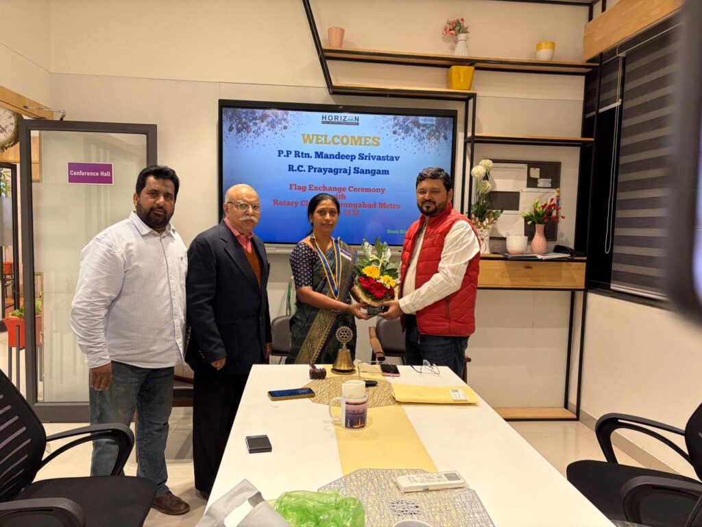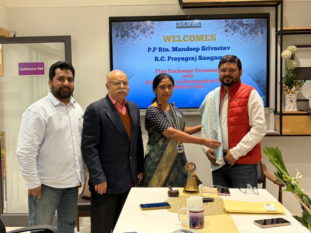रोटरी इंटरनेशनल के मूलमंत्र “Service Above Self” को आत्मसात करते हुए रोटरी प्रयागराज संगम एवं रोटरी क्लब ऑफ औरंगाबाद मेट्रो के मध्य एक सौहार्दपूर्ण फ्लैग एक्सचेंज कार्यक्रम का आयोजन 19 दिसंबर 2025 को छत्रपति संभाजीनगर (औरंगाबाद) में किया गया।