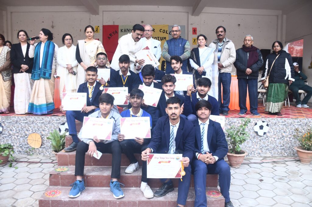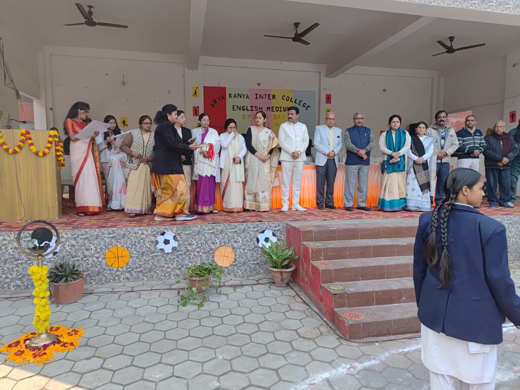 प्रयागराज आर्य कन्या इंटर कॉलेज इंग्लिश मीडियम का दो दिवसीय वार्षिकोत्सव के पहले दिन वार्षिक क्रीड़ा दिवस धूमधाम से मनाया गया कार्यक्रम का शुभारंभ दीप प्रज्वलन तथा गुब्बारे उड़ाकर प्रबंधक पंकज जायसवाल और मुख्यातिथिगण प्रोफेसर मनमोहन कृष्ण और संयुक्त शिक्षा निदेशक अर्थ महेंद्र सिंह यादव द्वारा किया गया । छात्राओं ने मार्च पास्ट ,दौड़ कबड्डी, खो खो तथा रिले दौड़ जैसी प्रतियोगिताओं में भाग लिया सभी विद्यार्थियों ने अनुशासन और खेल भावना का परिचय दिया इस अवसर पर प्रोफेशन मनमोहन कृष्ण तथा श्री महेंद्र सिंह यादव मुख्य अतिथि के रूप में उपस्थित रहे प्रतियोगिताओं में उत्कृष्ट प्रदर्शन करने वाले विद्यार्थियों को पुरस्कार और प्रमाण पत्र प्रदान किए गए उक्त अवसर पर विभिन्न रंगारंग कार्यक्रम प्रस्तुत किए गए जिनमें छोटे बच्चों द्वारा प्रस्तुत अम्बरीला डांस और वंदेमातरम की प्रस्तुति विशेष रूप से सराहनीय रहे। कॉलेज के प्रबंधक ने छात्र-छात्राओं के उज्जवल भविष्य के लिए कामना की तथा विद्यालय की प्रधानाचार्य डॉ मधु सिंह ने अतिथियों को धन्यवाद दिया फिर किया इस अवसर पर विद्यालय के समस्त शिक्षक शिक्षिकाएं उपस्थित रहे मंच का संचालन पारुल गुप्ता एवं सोनम जायसवाल ने किया यह आयोजन छात्रों के शारीरिक मानसिक और सामाजिक विकास के लिए अत्यंत प्रेरणादायक सिद्ध हुआ