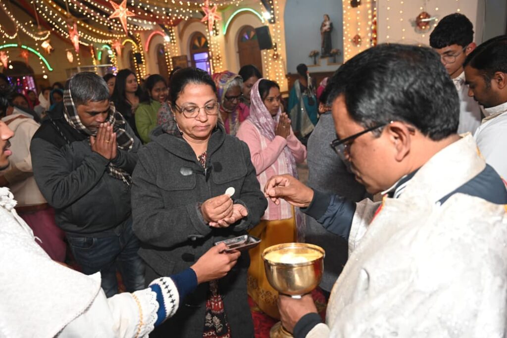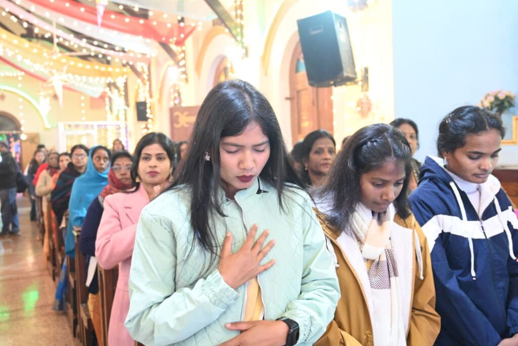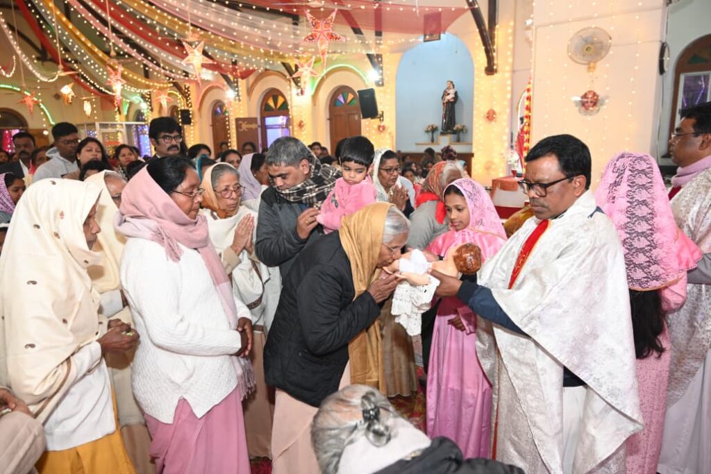 क्रिसमस के अवसर पर आयोजित मध्यरात्रि प्रार्थना सभा में बच्चों, महिलाओं, युवाओं और बुजुर्गों ने बढ़-चढ़कर भाग लिया। चरनी में विराजमान बाल यीशु की प्रतिमा के दर्शन के लिए श्रद्धालुओं की लंबी कतारें देखने को मिलीं। श्रद्धालु पारंपरिक श्रद्धा के अनुसार बाल यीशु की प्रतिमा को चूमते हुए सुख, शांति और समृद्धि की कामना करते नजर आए। यह दृश्य आस्था और विश्वास की गहरी भावना को दर्शाता रहा।