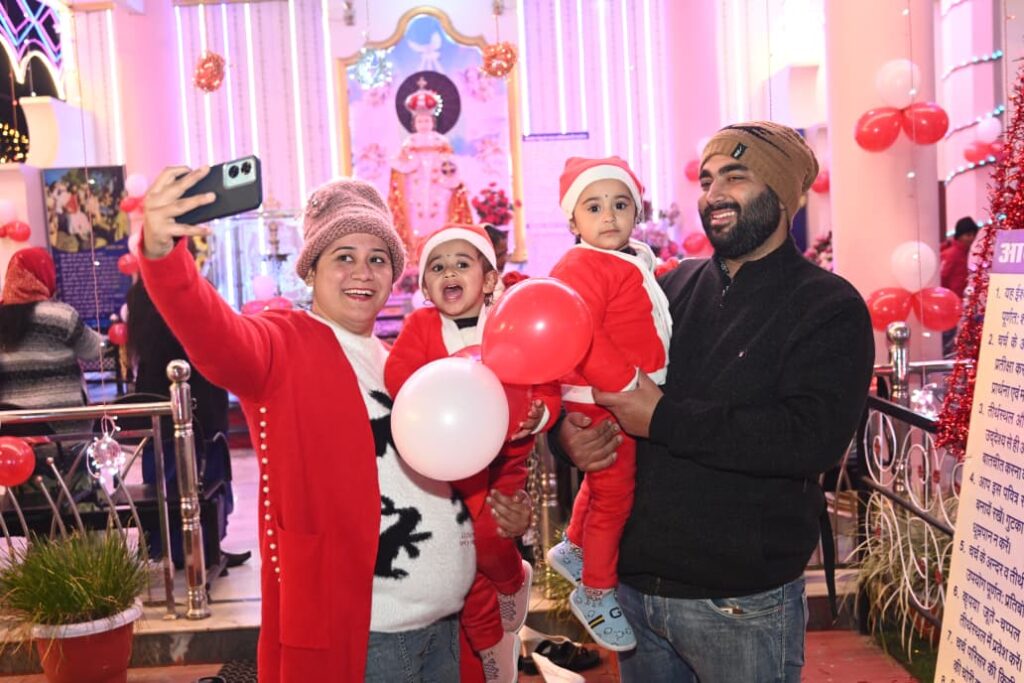 चर्च परिसर में बनाई गई चरनी विशेष आकर्षण का केंद्र रही, जिसमें माता मरियम, यूसुफ, चरवाहे और भेड़ों के साथ बाल यीशु का जन्म दृश्य सजीव रूप में प्रस्तुत किया गया। कई श्रद्धालु मोमबत्तियां जलाकर शांत मन से प्रार्थना करते दिखे, जबकि बच्चों में क्रिसमस को लेकर खासा उत्साह देखने को मिला। सांता क्लॉज की वेशभूषा, क्रिसमस गीतों और आपसी शुभकामनाओं ने माहौल को और भी जीवंत बना दिया।