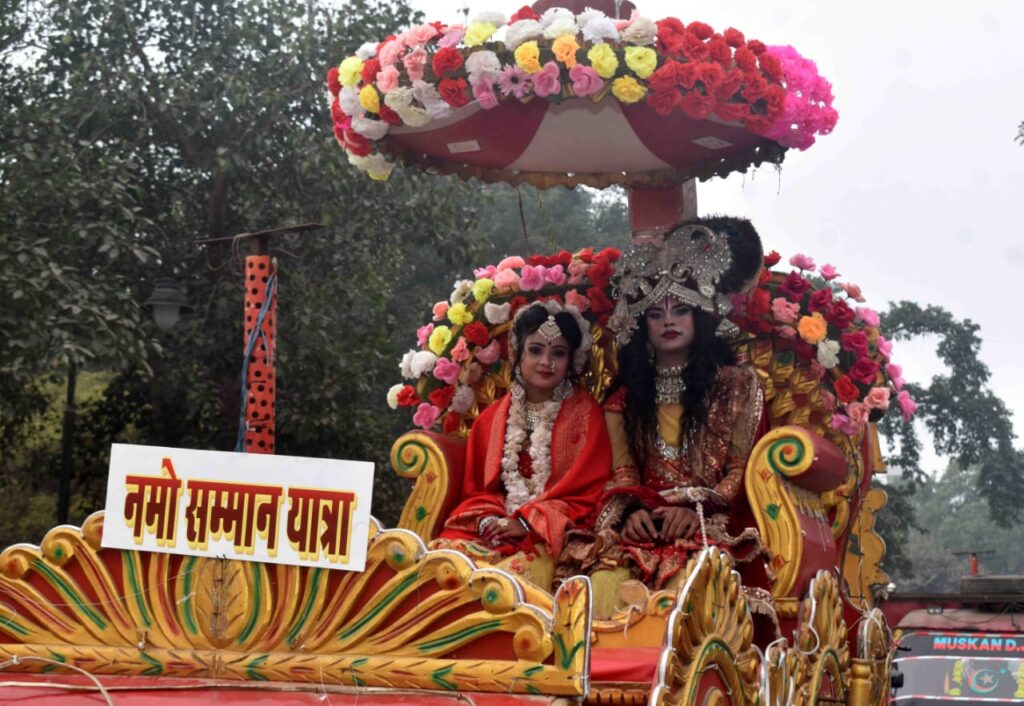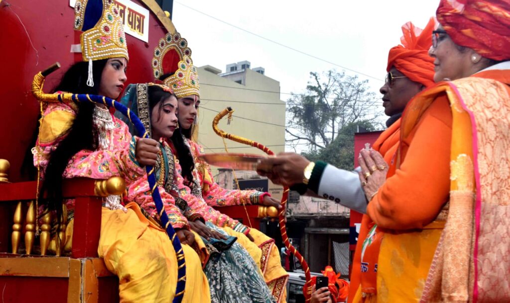 इस अवसर पर रॉयल होटल से हनुमान मंदिर तक निकली शोभायात्रा में काफी संख्या में महिलाओं ने शिरकत की । हाथों में तिरंगा झंडा , ओम अंकित भगवा ध्वज लिए इन महिलाओं के भारत माता की जय , जय श्रीराम के नारों से पूरा वातावरण गुंजायमान हो गया। यात्रा में भगवान राम , सीता , लक्ष्मण , हनुमान और उनकी वानरी सेना , भगवान कृष्ण से सुसज्जित रथ यात्रा में न सिर्फ चार चांद लगा रहे थे बल्कि राहगीरों के लिए आकर्षण के केंद्र थे। बैंड बाजा , रथ में जुते घोड़े और सजे-धजे ऊंट यात्रा की खूबसूरती को बढ़ा रहे थे। कार्यक्रम समाप्त होने के बाद महिलाओं को शॉल का वितरण किया गया। यात्रा का संचालन भाजपा नेता पवन श्रीवास्तव ने किया । इस अवसर पर पार्षद नीरज गुप्ता , पार्षद रोमा भारतीय , संत लाल , अनुराग संत ,अभिषेक संत , उमाशंकर पाल , व्यवसायी अजित श्रीवास्तव , ज्योति , रेखा , सुमन , सोनी , नेहा , स्मृति , प्रियांशी , पूजा आदि महिलाएं मौजूद रहीं।