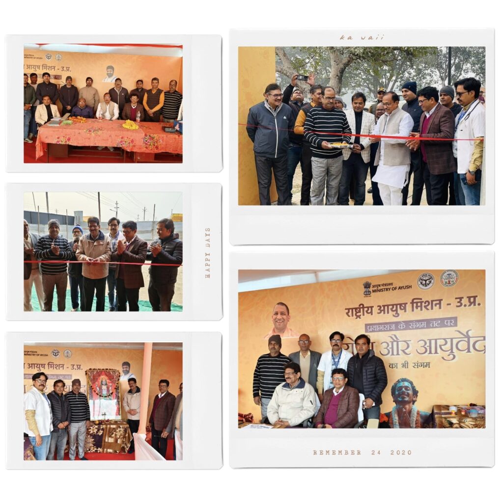 प्रयागराज माघ मेला में किला रोड स्थित सेक्टर 3 में राष्ट्रीय आयुष मिशन, उत्तर प्रदेश द्वारा संचालित आयुर्वेद चिकित्सालय का शुभारंभ विधायक फाफामऊ गुरु प्रसाद मौर्य एवं क्षेत्रीय आयुर्वेदिक एवं यूनानी अधिकारी प्रयागराज डॉ मनोज कुमार सिंह द्वारा दीप प्रज्वलन एवं भगवान धन्वंतरि, माँ भारती के चित्र पर माल्यार्पण किया गया।गुरु प्रसाद ने विगत महाकुंभ में आयुष विभाग द्वारा किए गए कार्यों की प्रशंसा की।सेक्टर 5 काली मार्ग कल्पवासी थाना के पास आयुर्वेद चिकित्सालय का शुभारंभ राजकीय आयुर्वेद महाविद्यालय हंडिया के पूर्व प्रधानाचार्य एवं विश्व आयुर्वेद मिशन के राष्ट्रीय अध्यक्ष प्रो.(डॉ.) जी. एस. तोमर ने किया। डॉ तोमर ने कहा कि आस्था के पावन पर्व माघ मेले में आने वाले श्रद्धालुओं की प्राचीन भारतीय चिकित्सा विधा आयुर्वेद में विशेष आस्था है।आयुष राज्य मंत्री डॉ दयाशंकर मिश्र दयालु के संरक्षण में माघ मेला क्षेत्र में आयुर्वेदिक एवं होम्योपैथिक चिकित्सालयों द्वारा श्रद्धालुओं एवं साधु संतों को चिकित्सा सुविधा प्रदान की जाएगी।