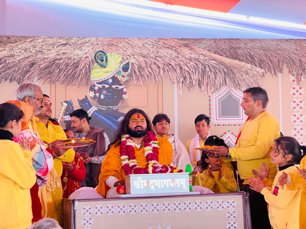 भागवत कथा के पहले दिन यजमान हरि शंकर मिश्र और कमलेश देवी के द्वारा आचार्य शुकस्वरूप आचार्य सतानंद जी महाराज के द्वारा साप्ताहिक कथा का आयोजन किया गया जिसमें आचार्य सतानन्द महाराज जी ने बताया कि किस प्रकार भक्ति महारानी का दुख कथा श्रवण मात्र से दूर हो गया और ज्ञान वैराग्य पुष्ट हो गए और अत्यंत पापी होने पर भी किस प्रकार(धुन्धुकारी महाखल:)धुंधकारी जैसा पापी भी भगवान के धाम को चला गया व्यास जी ने कथा का सार सुनाते हुए कहा कि मन की व्यथा का निवारण भगवान की कथा से ही हो सकता है इस मौके पर रघुनाथ द्विवेदी सामाजिक कार्यकर्ता प्रमोद मिश्रा मनोज मिश्र अमित मिश्र बबिता देवी सुधा देवी नारायण देव त्रिपाठी ममता देवी आशीष शुक्ला आदि हजारों की संख्या में भागवत श्रोता ने कथा का श्रवण किया