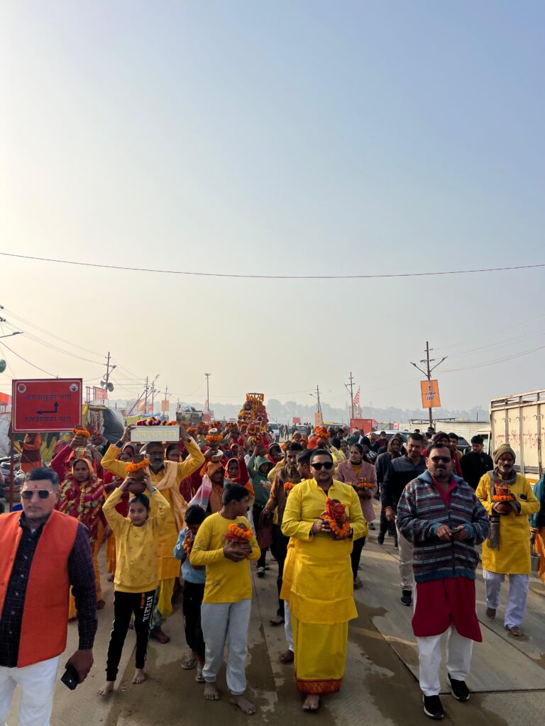 तीर्थराज प्रयाग की पावन माघ मेला भूमि पर कलश यात्रा गैवी नाथ अन्न क्षेत्र से घोड़ा और बग्घी से आरंभ हुई उसके बाद गंगा तट पर गंगा जी की आरती और पूजन किया उसके बाद पुनः गैवी अन्न क्षेत्र पुल नंबर छ पर आकर सानंद संपन्न हो गई.यात्रा के बाद भक्तों ने भागवत माहात्म्य में प्रवेश किया.
