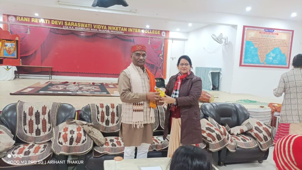 प्रयागराज l विद्या भारती से संबद्ध काशी प्रांत के रानी रेवती देवी सरस्वती विद्या निकेतन,राजापुर प्रयागराज में प्रधानाचार्य बांके बिहारी पाण्डेय के संयोजन में आयोजित दो दिवसीय शिशु वाटिका की समीक्षा बैठक ज्ञान, संस्कार और समर्पण का सुंदर संगम बनकर उभरी। नगरीय एवं ग्रामीण प्रांत प्रमुख तथा जिला प्रमुखों के मार्गदर्शन में तथा केशव और माधव संकुल की शिशु वाटिका प्रमुख बहनों सहित कुल 31 बहनों की सशक्त सहभागिता ने बैठक को विशेष गरिमा प्रदान की। इस अवसर पर क्षेत्रीय सह संगठन मंत्री डॉ. राम मनोहर, प्रदेश निरीक्षक शेषधर द्विवेदी, क्षेत्रीय शिशु वाटिका प्रमुख विजय उपाध्याय तथा रानी रेवती विद्या मंदिर निकेतन के प्रधानाचार्य बांके बिहारी पांडेय का प्रेरक सान्निध्य प्राप्त हुआ। चिंतन, मंथन और संकल्प से परिपूर्ण यह समीक्षा बैठक शिशु संस्कारों के सुदृढ़ीकरण की दिशा में सार्थक एवं प्रेरणादायी रहा l