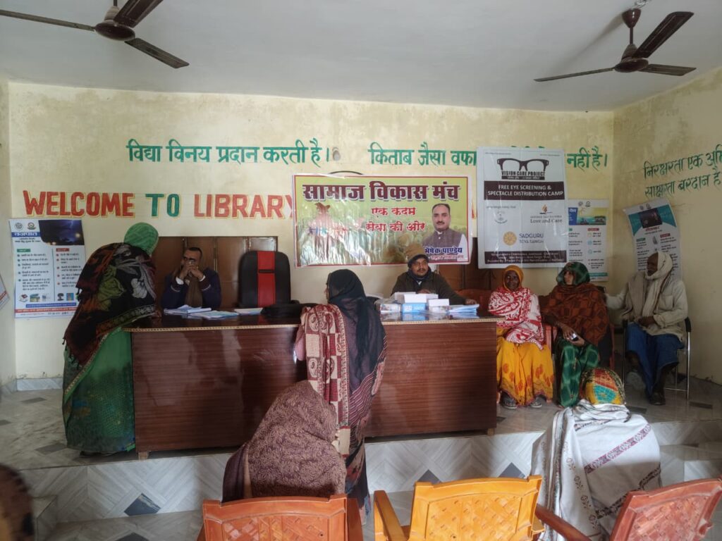 ज्ञानपुर। समाज विकास मंच एवं सदगुरु सेवा संघ ट्रस्ट चित्रकूट संयुक्त तत्वाधान में निःशुल्क नेत्र परिक्षण और दवा वितरण का कार्यक्रम संसारापुर के पंचायत भवन में सम्पन्न हुआ ।