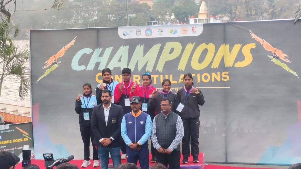प्रयागराज। भोपाल मध्य प्रदेश में दिनांक 01 फरवरी से 05 फरवरी 2026 तक आयोजित होने वाली 36वीं राष्ट्रीय केनो स्प्रिंट सीनियर पुरुष एवं महिला चैंपियनशिप 2025-2026 में पहले दिन प्रयागराज उत्तर प्रदेश रहने वाली सुप्रिया व नंदिनी ने उत्तर प्रदेश के लिए 1000 मी0 के -2 प्रतियोगिता में ब्रोंज मेडल जीतकर प्रयागराज ही नहीं उत्तर प्रदेश के गौरव को बढ़ाया है। उपरोक्त उपलब्धि पर उत्तर प्रदेश ओलंपिक एसोसिएशन के महासचिव अंदेश्वर पांडे, उत्तर प्रदेश कयाकिंग एवं कैनोइंग एसोसिएशन के (अध्यक्ष) सुरेश गुप्ता (वरिष्ठ उपाध्यक्ष) उपेंद्र कुमार (उपाध्यक्ष) उमंग अग्रवाल, श्री त्रिभुवन निषाद (सचिव), क्षेत्रीय क्रीड़ा अधिकारी प्रेम कुमार, आर. एस. बेदी, उप क्रीड़ा अधिकारी देवी प्रसाद,बोट क्लब अधिकारी देव पाल सिंह, संदीप गुप्ता, अजय निझावन , इनर व्हील क्लब की (अध्यक्ष) विनती अग्रवाल, पूजा तलवार, श्रीमती मधु, मनीषा गुप्ता, नीरज निषाद, प्रशांत श्रीवास्तव, जेसिका आनंद, सरिता निषाद, गुलाबचंद, अशोक कुमार,आदि ने बधाई दिया। यह जानकारी त्रिभुवन निषाद (सचिव) उत्तर प्रदेश कयाकिंग एवं केनोइंग द्वारा दिया गया