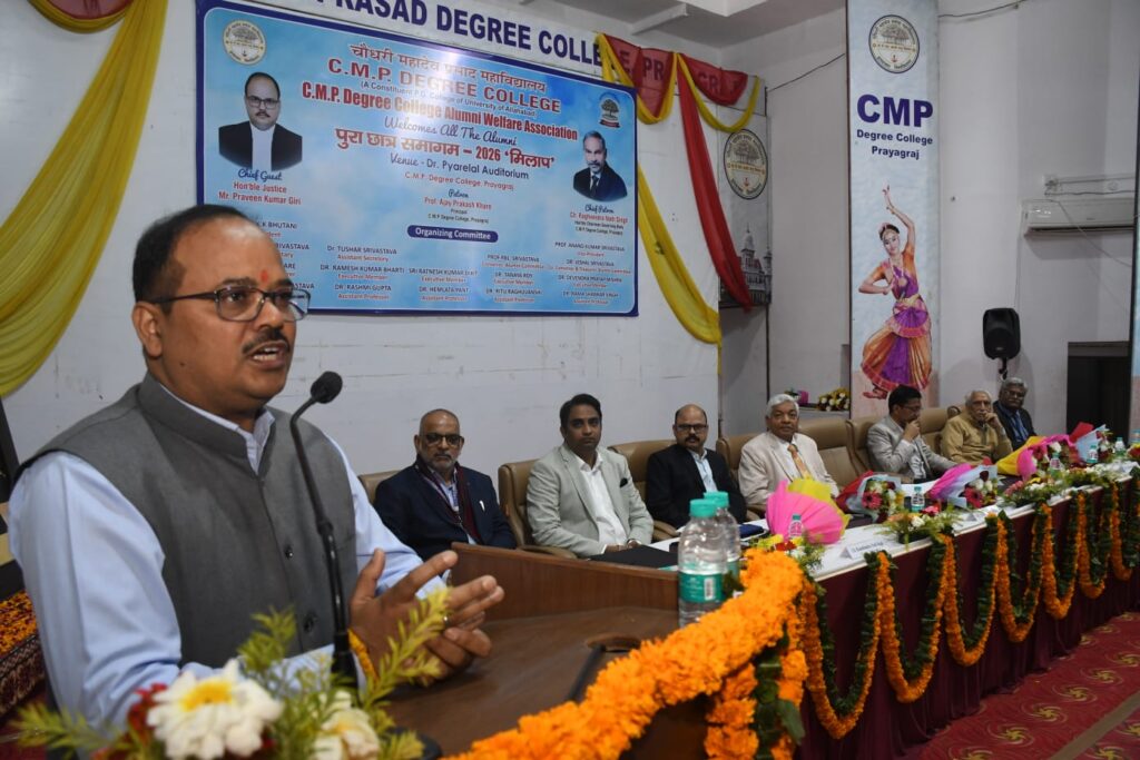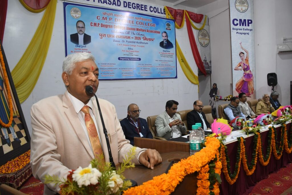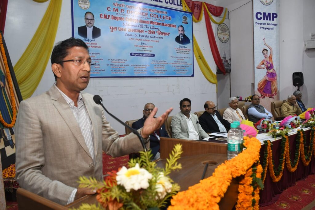 प्रयागराज.सी एम पी डिग्री कॉलेज के 76 वें संस्थापक दिवस समारोह के कार्यक्रम की श्रृंखला में दिनांक 8 फरवरी 2026 को पुरा छात्र समागम “मिलाप- 2026” का आयोजन किया गया। कार्यक्रम के मुख्य अतिथि इलाहाबाद उच्च न्यायालय के माननीय न्यायमूर्ति श्री प्रवीण कुमार गिरि थे और विशिष्ट अतिथियों में प्रयागराज के अतिरिक्त नगर आयुक्त श्री दीपेन्द्र यादव, मोतीलाल नेहरू मेडिकल कॉलेज के पूर्व प्राचार्य डॉ एस पी सिंह और इलाहाबाद विश्वविद्यालय के शोध एवं विकास संकाय के अधिष्ठाता प्रो मनीष कुमार श्रीवास्तव उपस्थित रहे।