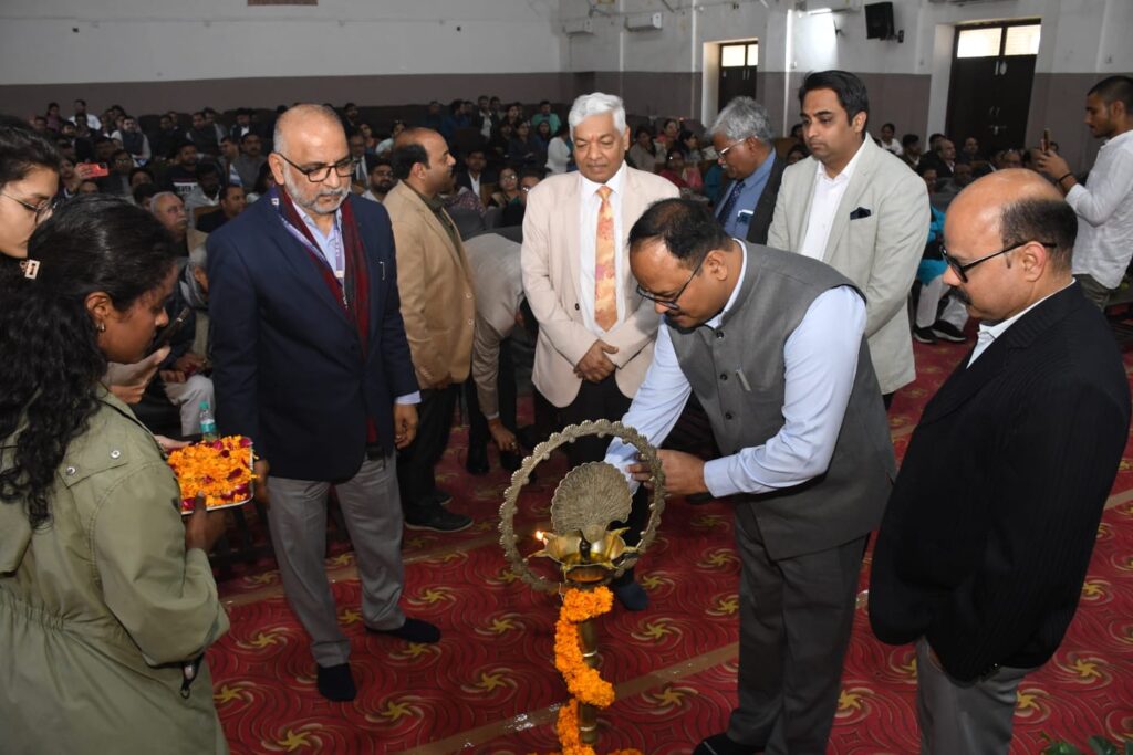 कार्यक्रम का शुभारंभ अतिथियों के द्वारा दीप प्रज्वलन से हुआ। इसके पश्चात सरस्वती वंदना और कुलगीत की प्रस्तुति महाविद्यालय के संगीत विभाग के द्वारा की गई।
