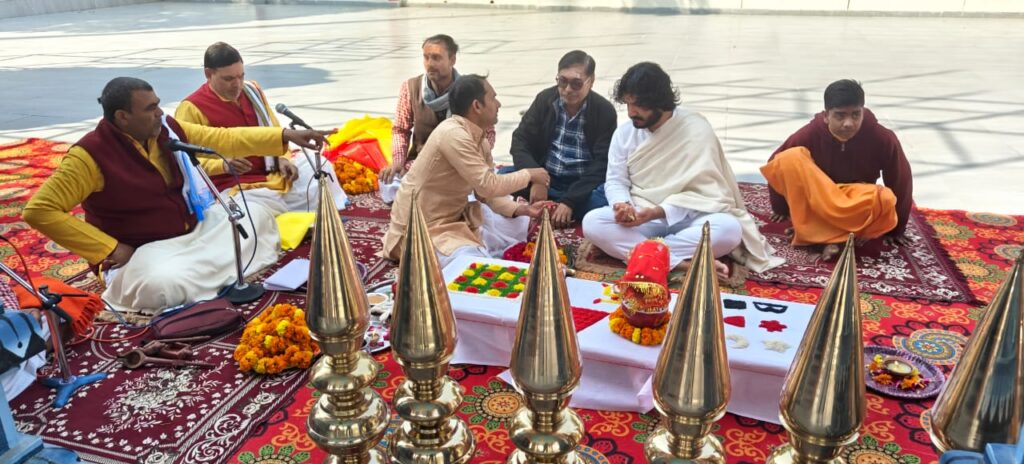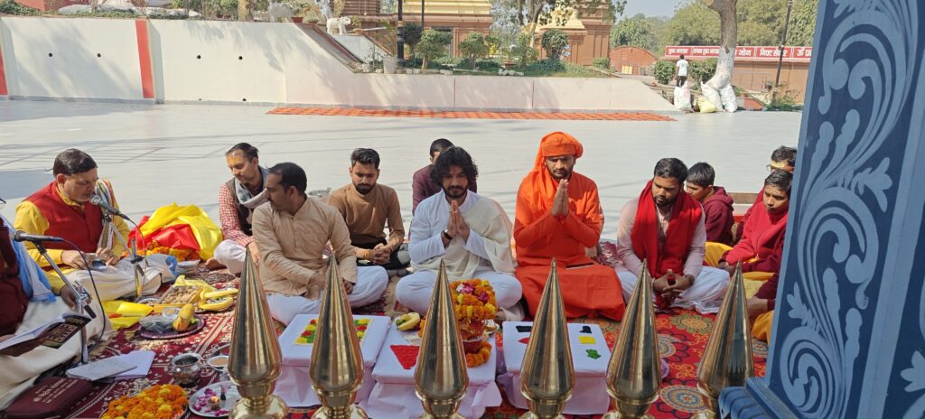 कलश स्थापना पूजन आचार्यों द्वारा विशेष मंत्रोच्चार और हवन के साथ हुई। श्री अरूण सरस्वत जी,माधव जी,परेश जी,संतोष पाण्डेय जी,रोनो जी, संजीव जी शिव मौर्या और अनेक विशिष्ट अतिथियों की गरिमामयी उपस्थिति रही।