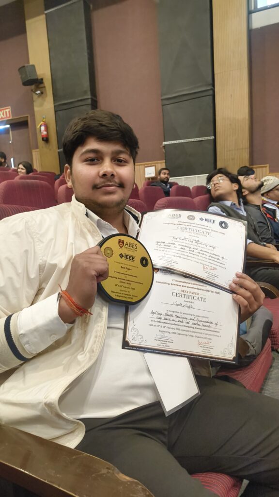 ABES Engineering College, Ghaziabad में आयोजित IEEE द्वारा प्रायोजित 2nd International Conference (ICCSC-2026) में छात्रों के शोध पत्र ‘AgriCrop’ को प्रतिष्ठित ‘Best Paper Award’ से सम्मानित किया गया।