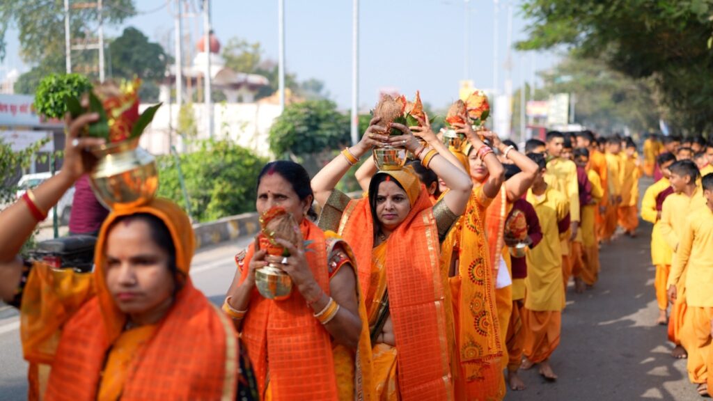 पांच दिवसीय महोत्सव के वेदमंत्रों के साथ निकाली गई कलश यात्रा