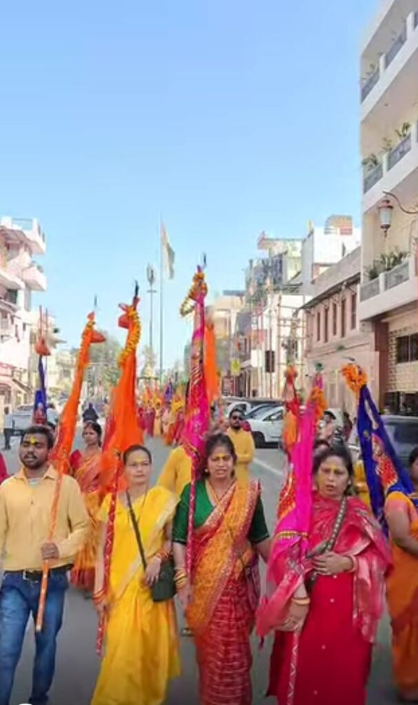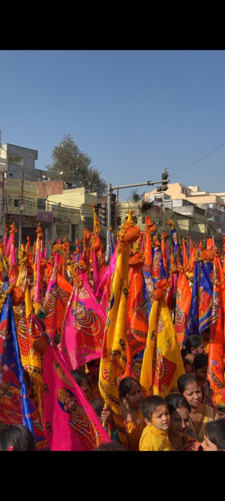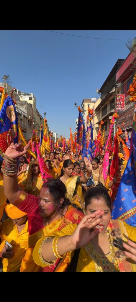 बाबा खाटू श्याम की निशान शोभायात्रा का इत्र और फूलों की पंखुड़ियों से किया गया जगह जगह स्वागत