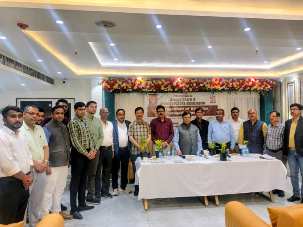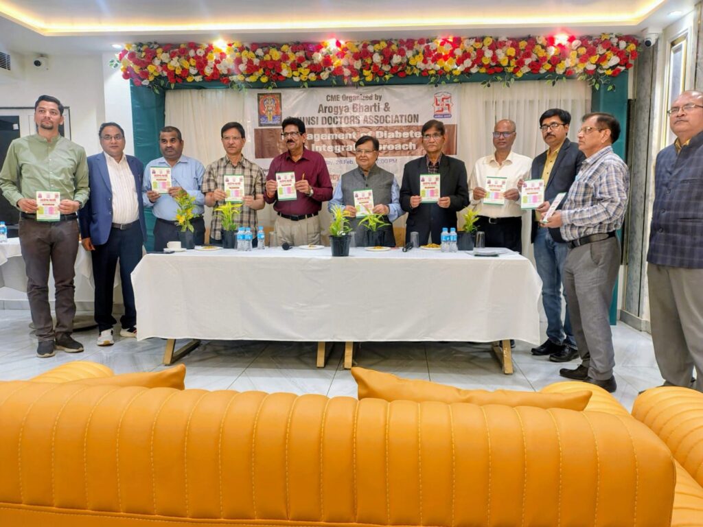आरोग्य भारती एवं झूँसी डॉक्टर्स एसोसिएशन के संयुक्त तत्वावधान में डाबर के सौजन्य से “मैनेजमेंट ऑफ डायबिटीज़-एन इण्टीग्रल एप्रोच” विषय पर एक सीएमई का आयोजन किया गया । जिसकी अध्यक्षता एसोसिएशन के अध्यक्ष डॉ जी पी शुक्ला ने किया । मंच पर वरिष्ठ सर्जन डॉ अरविन्द श्रीवास्तव, वरिष्ठ चिकित्सक डॉ वी के पाण्डेय, आरोग्य भारती के राष्ट्रीय उपाध्यक्ष प्रो.(डॉ) जी एस तोमर आयुर्वेद चिकित्सक डॉ विनोद कुमार एवं डॉ वी एन त्रिपाठी, उपस्थित रहे । संचालन आरोग्य भारती के वरिष्ठ कार्यकर्ता डॉ अवनीश पाण्डेय एवं एसोसिएशन के सचिव डॉ प्रमेश श्रीवास्तव ने संयुक्त रूप से किया । अपने उद्बोधन में विश्व आयुर्वेद मिशन के राष्ट्रीय अध्यक्ष एवं आरोग्य भारती के राष्ट्रीय उपाध्यक्ष डॉ जी एस तोमर ने डायबिटीज़ को एक जीवनशैली जन्य रोग बताया । इसकी ऐतिहासिक पृष्ठभूमि पर चर्चा करते हुए उन्होंने कहा कि वेद विश्व वांग्मय के प्राचीनतम ग्रंथों के रूप में स्वीकार्य हैं । डायबिटीज़ का इतिहास भी उतना ही प्राचीन है । वैदिक वांग्मय में इसे प्रमेह / मधुमेह माना गया है । इन प्राचीन ग्रंथों में इस रोग के निदान, लक्षण और चिकित्सा का अत्यन्त वैज्ञानिक वर्णन मिलता है । आरामतलब जीवनशैली, खानपान की गड़बड़ी एवं बढ़ती हुए मानसिक तनाव से इन रोगियों की संख्या निरंतर बढ़ती जा रही है । यहाँ तक कि प्रत्येक परिवार में कोई न कोई इस रोग का शिकार है । प्रति दस लोगों में एक इससे पीड़ित है । डॉ तोमर ने बताया कि इसकी मेटाबॉलिक सिंड्रोम, प्रीडायबिटीज़ एवं डायबिटीज़ तीन अवस्थाएँ होती हैं । मेटाबॉलिक सिंड्रोम में ब्लड सुगर तो सामान्य रहती है किन्तु कोलेस्ट्रॉल बढ़ा होता है एवं सेन्ट्रल ओबेसिटी (मोटापा) मिलती है । इसे मात्र खान पान के नियंत्रण एवं नियमित व्यायाम से नियंत्रित किया जा सकता है । दूसरी अवस्था जब ब्लड सुगर खाली पेट 126 मिग्रा से कम तथा खाने के बाद की 200 से कम हो तब उसे प्रीडायबिटीज की श्रेणी में रखा जाता है । इस अवस्था में आहार नियंत्रण, नियमित व्यायाम एवं हर्बल आयुर्वेदिक औषधियाँ पर्याप्त लाभकारी होती हैं । जब ब्लड सुगर इस सीमा से अधिक हो जाती है तब इसे डायबिटीज़ कहा जाता है । इस अवस्था में ओरल हाइपोग्लाइसिमिक औषधियाँ या इन्सुलिन आवश्यकतानुसार उपयोगी है । उन्होंने कहा कि इन औषधियों के साथ साथ आयुर्वेद औषधियों के प्रयोग से न केवल पाश्चात्य औषधियों की सक्रियता बढ़ने से उनकी मात्रा में कमी लाई जा सकती है अपितु शरीर के महत्वपूर्ण अंगों को क्षतिग्रस्त होने से बचाया जा सकता है । डॉ विनोद कुमार ने डायबेटिक रेटिनोपैथी पर अपने विस्तृत विचार साझा किए । डॉ अरविंद श्रीवास्तव ने डायबिटीज़ को मूल रूप से हेरीडिटरी रोग बताया तथा खानपा