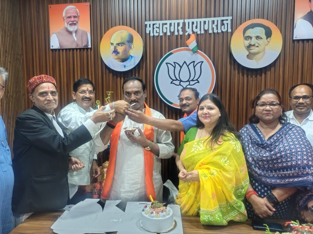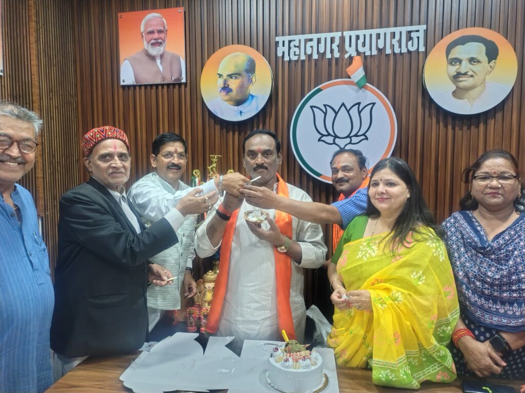भाजपा प्रयागराज महानगर अध्यक्ष संजय गुप्ता के बतौर अध्यक्ष एक साल पूरे होने पर पार्टी कार्यकर्ताओं ने उन्हें बधाई देते हुए उनके उज्जवल भविष्य की कामना की। मंगलवार को सिविल लाइन स्थित पार्टी कार्यालय में कार्यकर्ताओं द्वारा महानगर अध्यक्ष को अंग वस्त्र पहनाकर व केक काटकर उनका मुंह मीठा कराया गया। भाजपा महिला मोर्चा ने भी इस मौके पर महानगर अध्यक्ष का सम्मान एवं स्वागत अभिनन्दन किया। इस अवसर पर महानगर अध्यक्ष संजय गुप्ता ने भी कार्यकर्ताओं को इस सम्मान के लिए धन्यवाद एवं आभार व्यक्त करते हुए कहा कि कार्यकर्ताओं के लगन परिश्रम सहयोग से संगठन को ताकत व ऊर्जा मिलती है। महानगर के बूथ से लेकर मंडल स्तर के सभी कार्यकर्ता सम्मान के पात्र हैं। हम सब मिलकर संगठन को और मजबूत व 2047 तक विकसित भारत बनाने का संकल्प लेकर आगे बढ़ेंगे यही कामना है। राघवेंद्र कुशवाहा, डॉ शैलेष पांडेय, कुंज बिहारी मिश्रा, प्रमोद मोदी, वंदना सिंह, शिखा रस्तोगी, राजेश गोंड, पवन श्रीवास्तव, विवेक मिश्रा, विश्वास श्रीवास्तव, गया प्रसाद, दीप द्विवेदी, स्मृति श्रीवास्तव, संदीप यादव, मनु चावला, रवींद्र, विजय श्रीवास्तव, गांधी, शुभम सिंह, निर्दोष सिंह गोलू, आशुतोष शुक्ला आदि कार्यकर्ता उपस्थित रहे।
