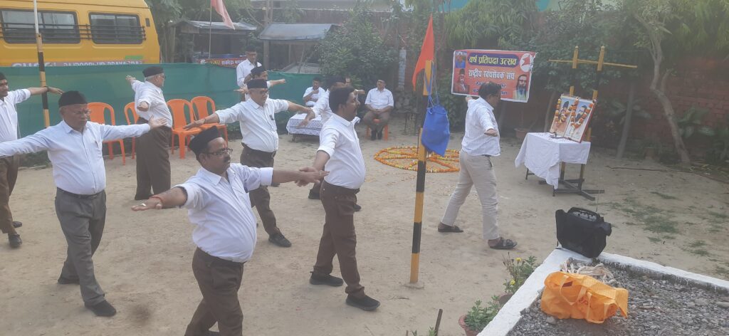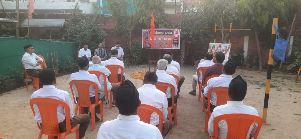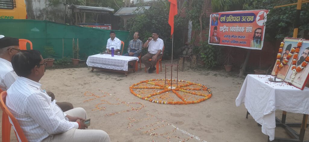 राष्ट्रीय स्वयंसेवक संघ की रज्जू भैया नगर, प्रयाग दक्षिण भाग की नंदी शाखा , का वार्षिकोउत्सव बहुत ही धूमधाम एवं हर्षिउल्लास के साथ मनाया गया, पूर्ण गणेश में स्वयंसेवकों ने अनुशासन का परिचय देते हुए योगासन एवं व्यायाम किया। कार्यक्रम का शुभारंभ परम पवित्र भगवा ध्वज प्रणाम के साथ प्रारंभ हुआ। मुख्य शिक्षक शैलेंद्र ने अमृत वचन के माध्यम से प्रेरणादाई विचार साझा किया तथा एकल गीत अमित ने प्रस्तुत किया मुख्य वक्ता के रूप में भूपेंद्र नगर कारवाह ने संगठन के सौ वर्षों का इतिहास का संक्षिप्त परिचय दिया तथा अध्यक्षता प्रशांत कुमार चटर्जी, सेवानिवृत्ति अपर जिला जज ने की उन्होंने नवयुवको व बालकों को शाखा से जोड़ने पर बल दिया जिससे उनमें शारीरिक स्वास्थ्य , अनुशासन एवं नैतिक संस्कार व देशभक्ति की भावना जागृत किया जा सके तथा अंत में धन्यवाद ज्ञापन नगर सह-संघचालक राजकुमार ने किया । कार्यक्रम का संचालन चंद्र प्रकाश, शाखा करवाह ने किया। वार्षिकोउत्सव कार्यक्रम में राजेश कुमार शर्मा, सह नगरकारवाह रविनाथ, सुनील, हेमंत ,जगजीत, डीके खन्ना, रवि कुमार, चंद्रभूषण, दिनेश , बी०एस० चौहान आदि अनेक स्वयं सेवक व समाज के गणमान्य लोग उपस्थित रहे।
