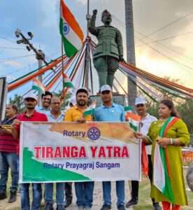 अमृत महोत्सव कार्यक्रम के अंतर्गत रोटरी क्लब प्रयागराज संगम ने तिरंगा यात्रा निकाली,सभी क्लबों ने की शिरकत