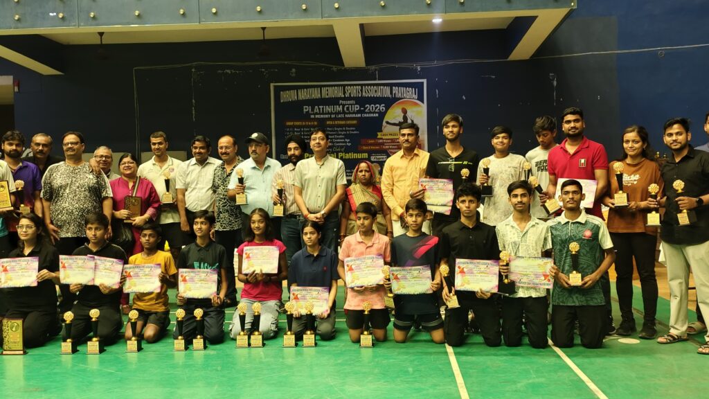 प्रयागराज, ध्रुव नारायण मेमोरियल स्पोर्ट्स एसोसिएशन, प्रयागराज द्वारा आयोजित प्लैटिनम कप 2026 का सफल एवं उत्साहपूर्ण आयोजन गरिमामय वातावरण में सम्पन्न हुआ। प्रतियोगिता में खिलाड़ियों ने उत्कृष्ट प्रदर्शन करते हुए खेल भावना का शानदार परिचय दिया।