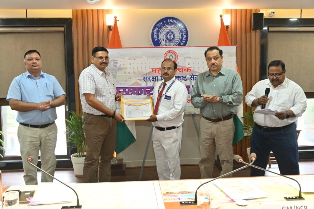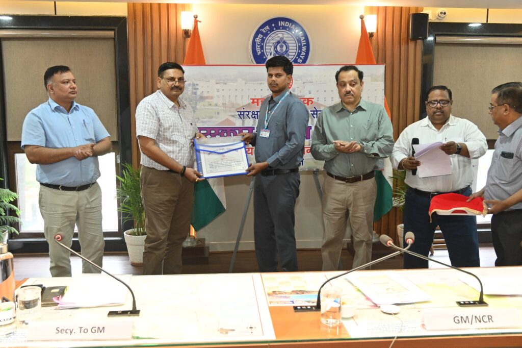 प्रयागराज महाप्रबन्धक, उत्तर मध्य रेलवे, नरेश पाल सिंह, प्रधान मुख्य संरक्षा अधिकारी, यतेन्द्र कुमार एवं उत्तर मध्य रेलवे के विभागाध्यक्षों की उपस्थिति में संरक्षा के प्रति किए गए उत्कृष्ट कार्यों के लिए प्रयागराज, झाँसी एवं आगरा मण्डलों से मार्च 2026 माह के लिए चयनित कुल 10 रेल कर्मचारियों को महाप्रबन्धक के द्वारा संरक्षा पुरस्कार प्रदान किए गए।
