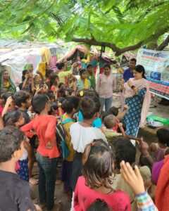 वात्सल्य सेवा समिति के तत्वधान में झुग्गी में रहने वाले बच्चों के बीच कॉपी पेंसिल रबड़ इत्यादि पठन-पाठन सामग्री एवं टाफी,बिस्किट भी वितरित किया गया