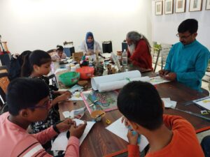 10 कलाओं की चल रही कार्यशाला खानम आर्ट गैलरी में जारी