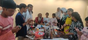 10 कलाओं की श्रृंखला में आज शाम 4:00 बजे की कार्यशाला में मिट्टी की कला का बेहतरिन प्रदर्शन हुआ बच्चों को दिल्ली से आए कलाकार (जसवंत सिंह गिल जी) ने बड़ी रोच के के रोचक्तता से मिट्टी की कला सिखाया बच्चन का उत्सा देखने वाला था की हाथों में मिट्टी से उभरने लगी एक से एक कलाकृतिऔर एक मूर्तिकार कलाकार के सामने बच्चो के कार्य का नामुना पेश हो गया जो बड़ा सरहनिय था बहुत जोश और उमंग के साथ सुंदर-सुंदर मूर्तिकला तैयर हुई खानम आर्ट गैलरी की निर्देशक डॉक्टर ज़ाहेदा खानम ने बताया है कार्यशाल बहुत अच्छी चल रही थी । कल बच्चो को रिबन के गुलाब, ग्लास पेंटिंग ,मेहंदी ,ऑयल पेंटिंग ,एक्रेलिक पेंटिंग सिखया जाएगा जिसका जिस् में दिलचस्पी है बच्चे बहुत आनंद लेकर सिख रहे हैं साथ ही गैलरी में चल रही प्रदर्शनी का लोग आनंद ले रहे हैं 15 अक्टूबर को इसकी समापन समारोह है सबी पार्टिसिपेंट्स को सर्टिफिकेट प्रदान किया जाएगा साथ ही बेस्ट आर्टवर्क अवॉर्ड भी होगा दिल्ली से मैं कलाकार को कला श्रेष्ठ अवॉर्ड दिया जाएगा दर्शनों के लिए सुनहरा मौका है 15 अक्टूबर 3:00 बजे