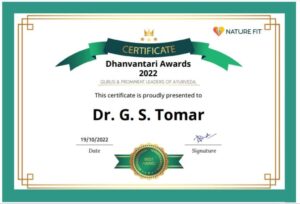 डॉ. जी एस तोमर धन्वन्तरि अवार्ड से सम्मानित