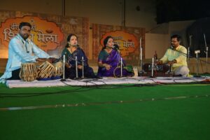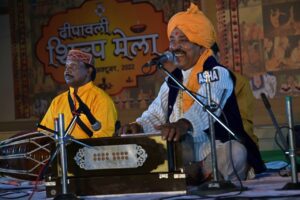 दीपावली शिल्प मेले में बुधवार की सुरमई शाम को सांस्कृतिक कार्यक्रम का आयोजन किया गया जिसमें लोकगीत गायन, भजन, सुगम संगीत की प्रस्तुति कलाकारों के द्वारा शिल्प हाट के मुक्ताकाशी मंच पर किया गया। कार्यक्रम की शुरुवात प्रयागराज के लोकगीत गायक उदय चन्द्र परदेशी और उनके साथी कलाकारों ने हनुमत स्तुति कजरी से की इसके बाद उन्होंने ‘‘ लेले अइहा बालम शिल्प मेलवा से चुनरी ना त तरसा देहब हमहूं देखा देहव सेजरिया से अंगुरी एवं घर-घर जरी दीया देवरी के दिनवां प्रकाश पर्व आइल हो कातिक महिनवां गाकर श्रोताओं को खूब पसंद आया। संगीत के क्षेत्र में काफी नाम कमा चुकी लखनऊ से पधारी यामिनी पाण्डेय व कामिनी मिश्रा ने युगल में ‘‘ हमारे साथ रधुनाथ किस बात की चिंता एवं ऐसी मैं तो प्रेम दीवानी आज मेले में उड़ रही धूल मोहे प्यारी लागे भजन गाकर खूब तालियां बटोरी। वही तबला वादन नितिश हारमोनियम अंकित सिंह एवं पैड पर सक्षम श्रीवास्तव ने साथ दिया। कार्यक्रम की अगली कड़ी में प्रयागराज के विकास श्रीवास्तव ने ‘‘ सजा दो घर को गुलशन मेरे श्रीराम आए एवं फूलोें में तुम्हारा इशारा तो नहीं एवं श्रोताओं की मांग पर कई फिल्में गाने प्रस्तुत कर इस संगीत की निशा को आगे बढ़ाया। वहीं प्रयागराज की अवधी लोकगायिका मंजू नारायण ने सुभद्रा का सोहर ‘‘ मचिइह बैठइ हैं सासु ता बहुअर अरज करै कि सासु भौजी कै भये नंद लाल नैहर हम जाबे एवं सुन-सुन दुल्हा केस तोहर परिवार को गाकर सबका ध्यान अपनी ओर खींचा। दयाराम कनौजिया और उनके सहयोगियों द्वारा कवन रंग मूंगवा कवन रंग मोतिया कवन हो रंगवा मां पर दुलर्भ धोबिया नृत्य की मनमोहक प्रस्तुति से सभी का दिल जीत लिया। कार्यक्रम का संचालन शरद मिश्रा ने किया।