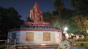 धन्वंतरी जयंती पर महर्षि भरद्वाज की विशाल प्रतिमा पर दीप दान
