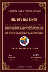 डॉ देवराज सिंह को विश्व आयुर्वेद मिशन ने किया लाइफ़टाइम एचीवमेंट अवार्ड से सम्मानित