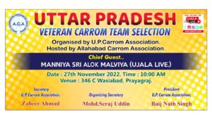 संगम नगरी प्रयागराज में लगा वेटरन कैरम खिलाड़ियों का मेला,मौका था वेटरन कैरम प्रतियोगिता में उत्तर प्रदेश का प्रतिनिधित्व करने के लिए 2 खिलाड़ियों के चयन का।