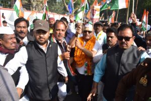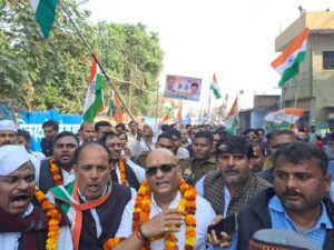 प्रयागराज: यूपी के पूर्वांचल में जनता तक अपनी पहुंच बनाने के लिए कांग्रेस 450 किमी की पदयात्रा का आयोजन किया गया। यह यात्रा जनपद से निकलकर के अलग-अलग जिलों से होते हुए 22 दिसम्बर को वाराणसी में समाप्त होगी। रविवार को कांग्रेस के राष्ट्रीय सचिव राजेश तिवारी ने पार्टी का झंडा दिखाकर यात्रा को आगे के लिए रवाना किया। पूर्वांचल जोन के प्रांतीय अध्यक्ष अजय राय के नेतृत्व में 12 दिवसीय यात्रा निकली गई। कांग्रेस के प्रांतीय अध्यक्ष अजय राय समेत पार्टी प्रदेश उपाध्यक्ष मकसूद खान, महासचिव मुकुंद तिवारी, राघवेंद्र सिंह, विवेकानंद पाठक समेत अन्य नेता सुबह 9 बजे संगम स्नान के बाद मनकामेश्वर मंदिर में पूजन अर्चन किया। इसके बाद कांग्रेस सेवादल ने परम्परागत तरीके से ध्वज वंदन किया गया। यहाँ से कांग्रेस सेवादल के प्रदेश अध्यक्ष प्रमोद पाण्डेय ने राष्ट्रीय ध्वज प्रांतीय अध्यक्ष को देकर यात्रा शुरु की गई। दोपहर 1:15 बजे निकली यात्रा कीटगंज, कोठा पार्चा, बहादुरगंज, कोतवाली, रानी मंडी, अटाला, नूरउल्ला रोड, खुल्दाबाद चौराहा, नखासकोना होते हुए बड़ी स्टेशन पर समाप्त की गई। यात्रा के दौरान जगह जगह लोगो ने यात्रियों को फूल माला पहनाकर और पुष्पवर्षा कर के स्वागत किया। अजय राय ने कहा की यह यात्रा नफरत हिंसा और डर के खिलाफ है, जिसे देश में फैलाया जा रहा है। भाजपा का तरीका यही है। सबसे पहले, डर फैलाना। युवाओं, किसानों और आम लोगों में डर फैलाना। जब डर फैल जाता है तो उसे हिंसा में बदल देते हैं। हिंसा डर का ही रूप है। जो डरता नहीं है, वह हिंसा भी नहीं कर सकता। जो डरता है, वह ही हिंसा करता है। डर मिटाना हमारा लक्ष्य है। इस हिंदुस्तान में किसी से डरने की जरूरत नहीं है।