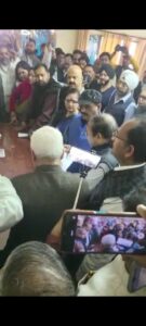 प्रयाग व्यापार मंडल के तत्वधान में जी एस टी विभाग द्वारा छापे के विरोध में ग्रेड 1 के उच्च अधिकारी श्री प्रदीप यादव एवं अन्य वरिष्ठ अधिकारों का उनके कार्यालय में घेराव एवं विरोध दर्ज कराया गया।