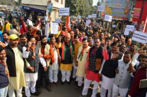 जिला मुख्यालय पर जिलाअध्यक्ष हरीओम मिश्रा, व भाजपा मीडिया प्रभारी राघवेन्द्र शुक्ल के नेतृत्व में समर्थको ने जताया विरोध,