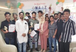 आज़ादी के अमृत महोत्सव पर नाज़ सामाजिक संस्था की ओर से विशाल रक्तदान शिविर एवं महान विभूतियों के सम्मान के साथ देश को समर्पित ८० रक्तदाताओं ने रक्तदान किया।नाज़ मल्टिस्पेशियलीटी हास्पिटल आई हास्पिटल व नाज़ ब्लड बैंक के सहयोग से जहां सभी रक्तदाताओं को मोमेन्टो व प्रशस्ति पत्र दे कर सम्मानित किया गया वहीं उत्साहित युवा रक्तवीरों ने उत्साह के साथ सहभागिता निभाते हुए ब्लड बैंक में बने सेल्फी प्वाइंट पर फोटो भी खींचवाने को आतुर दिखे। डॉ नाज़ फात्मा ने युवाओं का उत्साहवर्धन करते हुए कहा की आज का युवा अगर रक्तदान करने के प्रति जागरूक हो गया तो समझो अब देश में खून की कमी के कारण किसी की जान नहीं जाएगी। डॉ विश्वदीप केसरवानी ने कहा अब लोग धीरे धीरे जागरुक हो रहे हैं उनके दिल में जो भ्रांतियां फैली थी की रक्त देने से कमज़ोरी आ सकती है और तरहां तरहां की बिमारी से ग्रसित हो जाएंगे तो उस संशय का बादल भी अब छंट गया है।इसका प्रमाण है कि आज अस्सी लोगों ने रक्तदान किया उनमें से अस्सी प्रतिशत युवा वर्ग के लोग ही ज़्यादा नज़र आए। मुख्य अतिथि महापौर गणेश चन्द्र केसरवानी ने रक्तदान शिविर का फीता काट कर उद्धघाटन करने के साथ रक्तवीरों का हौसला बढ़ाया और उज्वल भविष्य की कामना की।वहीं क्षेत्रिय पार्षद हाजी सलामत उल्ला खान विशिष्ठ अतिथि के तौर पर शामिल हुए।नाज़ सामाजिक संस्था की ओर से मुख्य अतिथि गणेश केसरवानी ,पार्षद हाजी सलामत उल्ला खान व अन्य गणमान्य लोगों को शॉल ओढ़ाकर व मोमेन्टो व बुके भेंट कर सम्मानित किया गया।नाज़ मल्टिस्पेशियलीटी हास्पिटल की ओर से देश भक्ति से ओत प्रोत कार्यक्रम के उपरान्त सोशल ऐक्टिविस्ट ,डाक्टर्स , पत्रकारों व इलेक्ट्रॉनिक मीडिया से जुड़े लोगों का सम्मान भी किया गया।रुद्रा इवेन्ट्स के डायरेक्टर अमरीश सिंह , एकता सिंह ने रक्तदान में बढ़ चढ़ कर हिस्सा लिया।राह फाउण्डेशन,ऐवेन्जर ग्रुप के युवा रक्तदाताओं में मोहम्मद शहबानुल हक़ ,सैय्यद फरहान रज़ा हैदर रिज़वी ,अनस परवेज़ ,राहुल गांधी ,बज़्म अली ,फरहान अहमद ,पत्रकार इमरान युसूफजई , डॉ विश्वदीप केसरवानी , डॉ निहारिका केसरवानी डॉ जमशेद अली ,फहमीना ,इमरान अजमली आदि अस्सी युवाओं ने स्वेच्छा से उत्साहपूर्वक रक्तदान किया। डॉ नाज़ फात्मा , मैनेजिंग डायरेक्टर अमित यादव ,डॉ जमशेद अली , डॉ हरदीप कौर , डॉ क़ादिर ,डॉ मामून अहमद , डॉ ज़ाकिर नियाज़ उद्दीन , डॉ नोमान खान , डॉ अली , इंजीनियर कुलदीप केसरवानी ,डॉ अभिषेक कनौजिया , नाज़ मल्टिस्पेशियलीटी हास्पिटल के मैनेजर अर्सलान खान ,बिलाल ग़ाज़ीपुरी ,आरिफ ,समद ,मोनू अनवार , मोहम्मद नाज़िम ,नीरज प्रजापति , शक्ति ,कैफ खान ,रेहान ,सैफ अली खान ,फहद ने भी रक्तदान किया।आई हास्पिटल व पैरामेडिकल